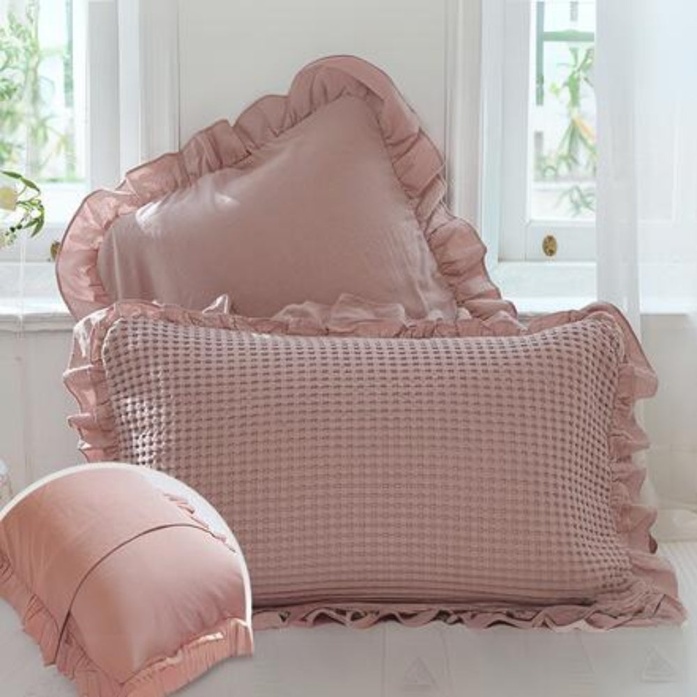 Waffle Weave Cotton Pillowcases with Ruffle (2PCS)