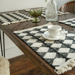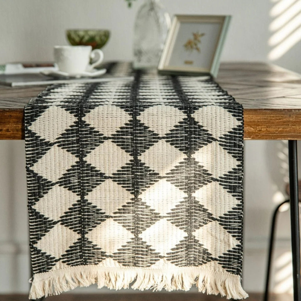 Elevate your table setting with this diamond table runner, finished with tassel fringe for a refined touch. Its bold yet simplistic design pairs beautifully with wooden tables and natural decor, offering everyday style that feels warm, modern, and effortlessly inviting.