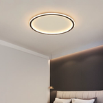 Enhance your space with this round, modern ceiling light inspired by Scandinavian design. It is made from durable aluminium and iron, featuring clean lines and a minimalist shape, making it suitable for dining rooms, bars, or living areas. The integrated LED light emits a soft, warm glow that creates an inviting atmosphere. This easy-to-install light is available in various sizes and combines functionality, style, and contemporary elegance for any interior.