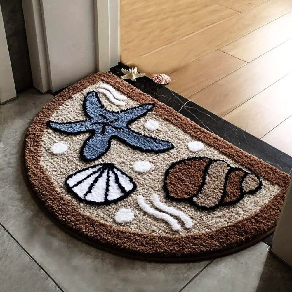 A charming and functional bath mat featuring playful patterns like starfish, seashells, and strawberries with flowers. Perfect for adding a soft, vibrant touch to your bathroom, kitchen, or entryway. Its absorbent, non-slip design ensures safety and comfort.